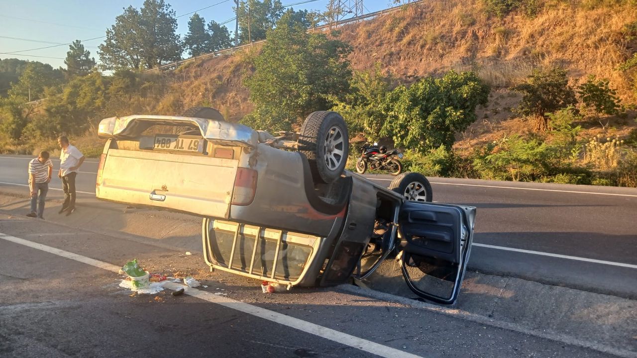 Olay; ilçeye bağlı Ören Mahallesi İbrahim İzmirli caddesinde meydana geldi. İddiaya göre, Z.O. idaresindeki hafif ticari kamyonet direksiyon hakimiyetini kaybedip takla attı, ardından orta refuje devrildi. Araçta yolcu olarak bulunan E.C. ve H.D. ve araç sürücüsü Z.O. için sağlık ekiplerine haber verildi. Kısa sürede olay yerine gelen sağlık ekipleri yaralılara yaptıkları ilk müdahalenin ardından Devlet hastanesine kaldırdı. Hastanede tedavi altına alınan yaralıların hayati tehlikesi olmadığı öğrenildi. Kaza ile ilgili soruşturma başlatıldı.