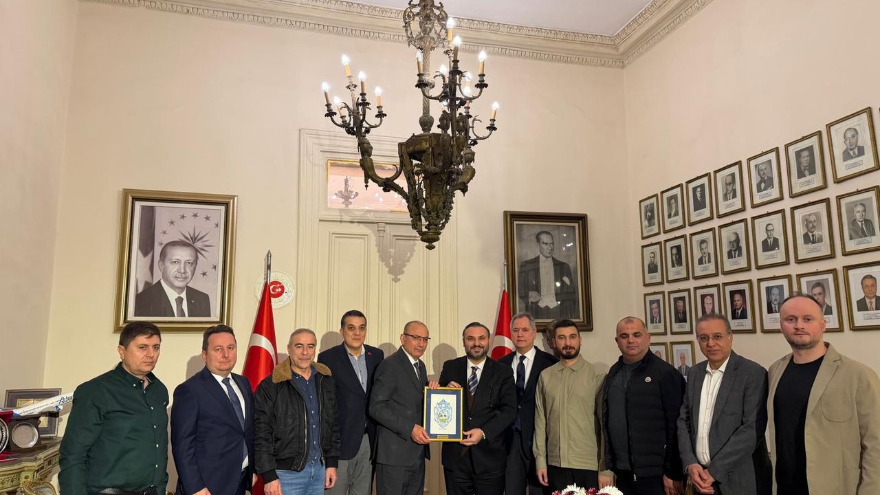 Ziyaret vesilesiyle, Zonguldak’ın simgelerini taşıyan el yapımı özel tablo ile geçtiğimiz yıl başarıyla düzenlenen ZONSİAD 3. Genel Ticaret Fuarı’na ait İngilizce firma kataloğu, Sayın Büyükelçi Salih Mutlu ŞEN’e takdim edilerek bölgenin üretim gücü ve ticari potansiyeli aktarıldı.